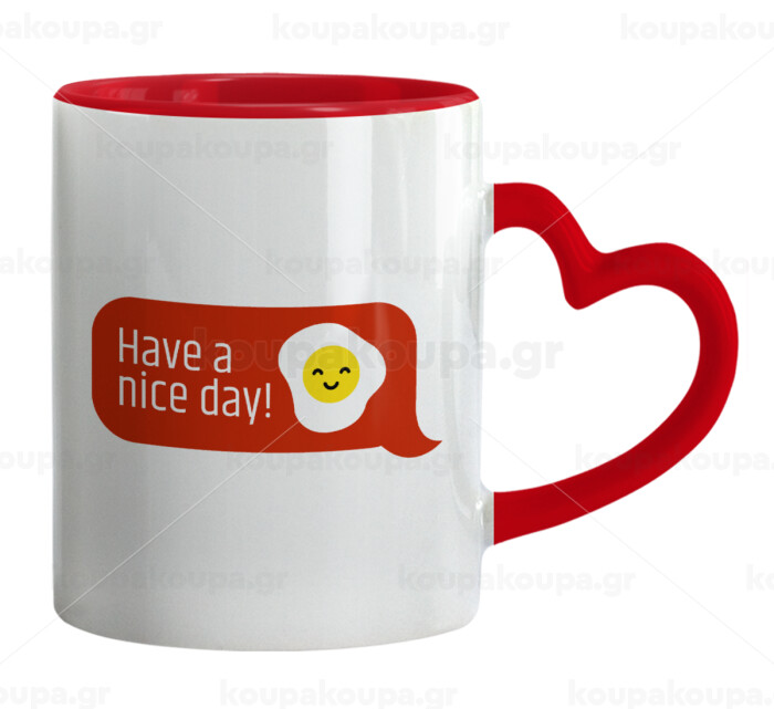Have a nice day Emoji, Κούπα καρδιά χερούλι κόκκινη, κεραμική, 330ml
