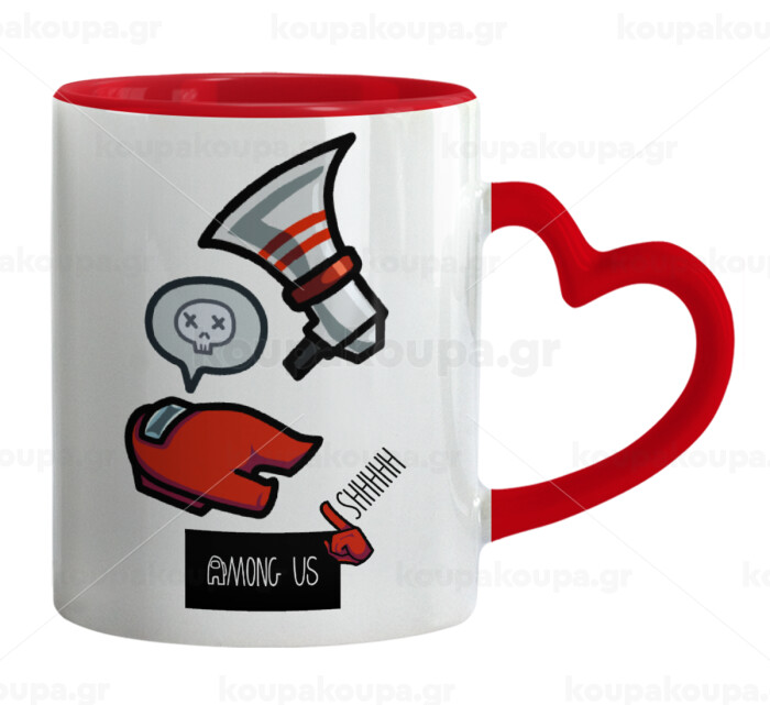 Among US Shhhh!!!, Κούπα καρδιά χερούλι κόκκινη, κεραμική, 330ml