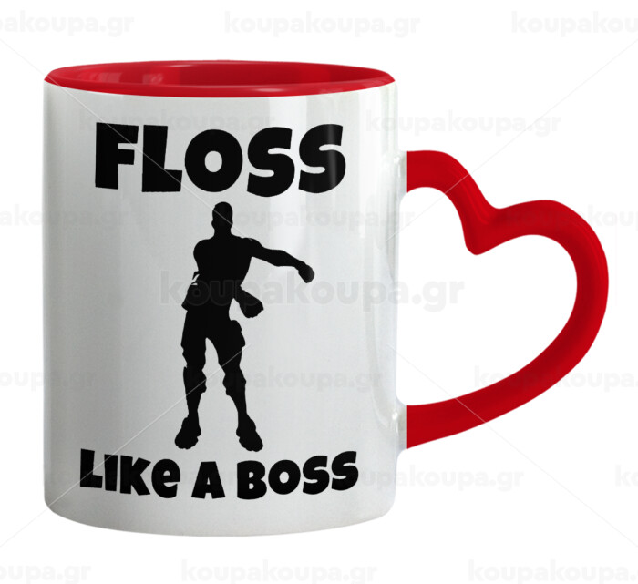 Fortnite Floss Like a Boss, Κούπα καρδιά χερούλι κόκκινη, κεραμική, 330ml