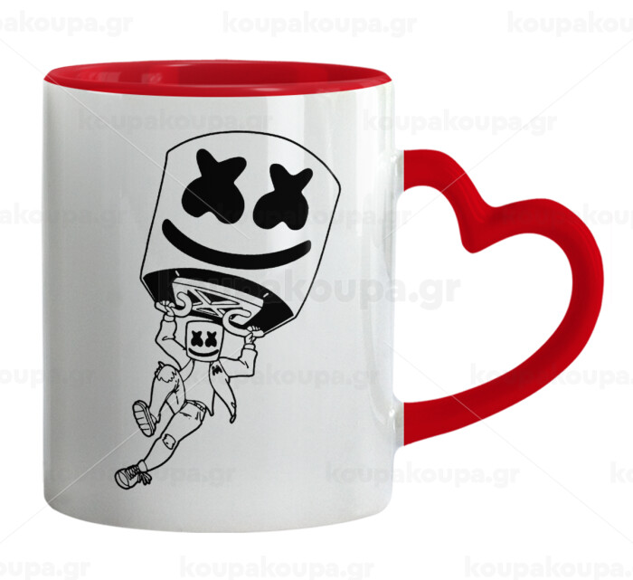 Fortnite Marshmello, Κούπα καρδιά χερούλι κόκκινη, κεραμική, 330ml