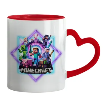 Minecraft Nether Portal, Κούπα καρδιά χερούλι κόκκινη, κεραμική, 330ml