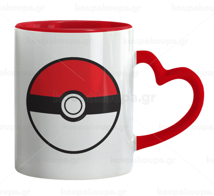 Pokemon ball, Κούπα καρδιά χερούλι κόκκινη, κεραμική, 330ml