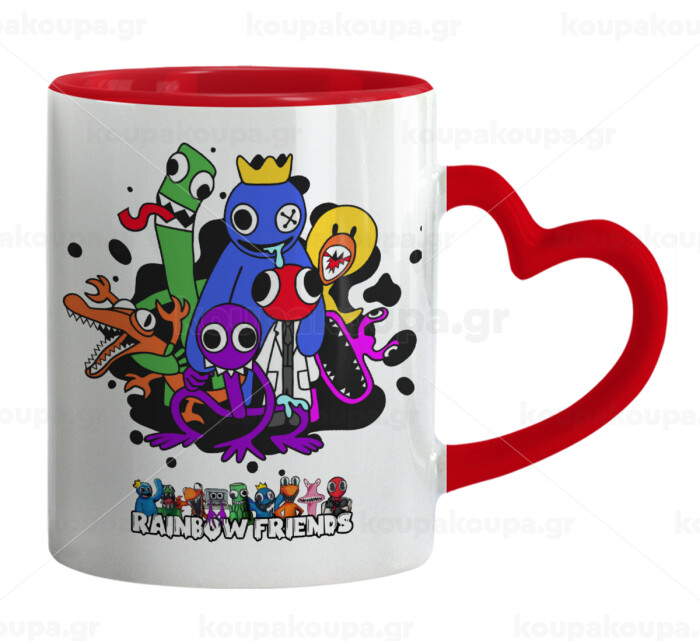 Rainbow friends, Κούπα καρδιά χερούλι κόκκινη, κεραμική, 330ml