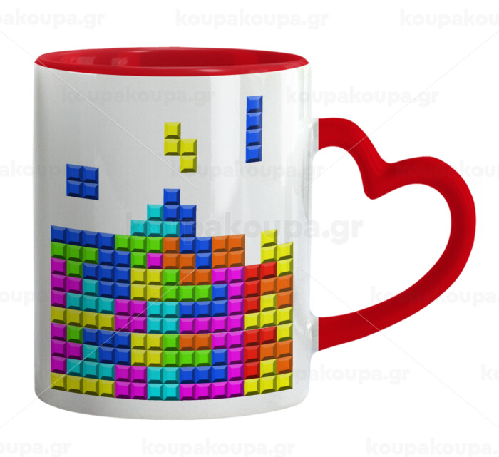 Tetris blocks, Κούπα καρδιά χερούλι κόκκινη, κεραμική, 330ml