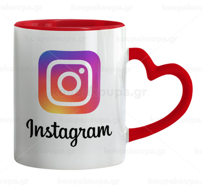 Instagram, Κούπα καρδιά χερούλι κόκκινη, κεραμική, 330ml