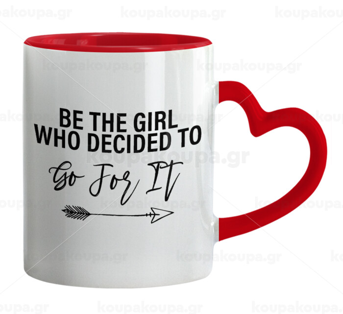 Be the girl who decided to, Κούπα καρδιά χερούλι κόκκινη, κεραμική, 330ml