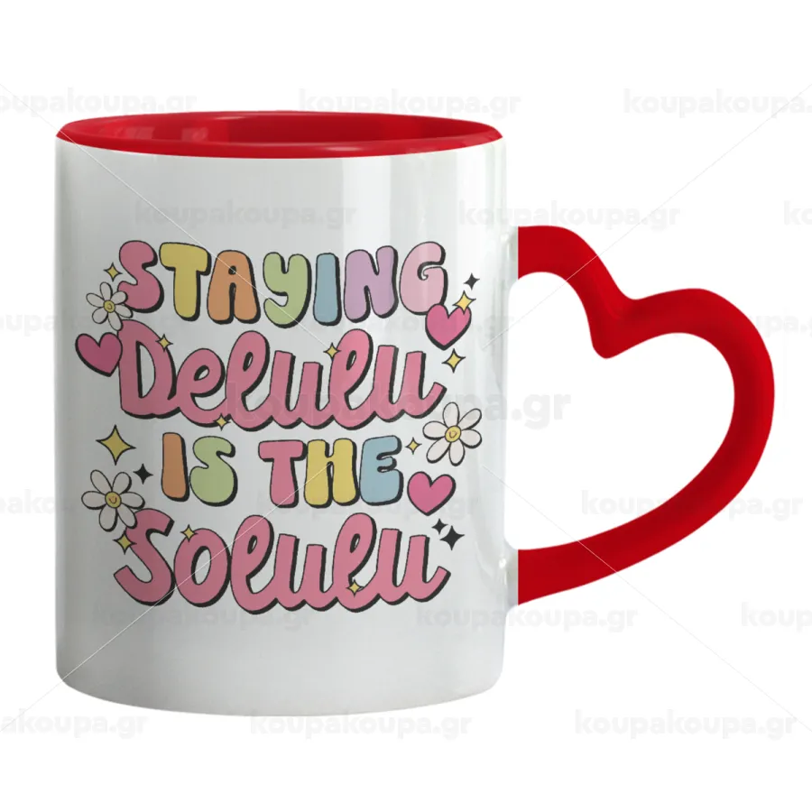 Delulu, Κούπα καρδιά χερούλι κόκκινη, κεραμική, 330ml
