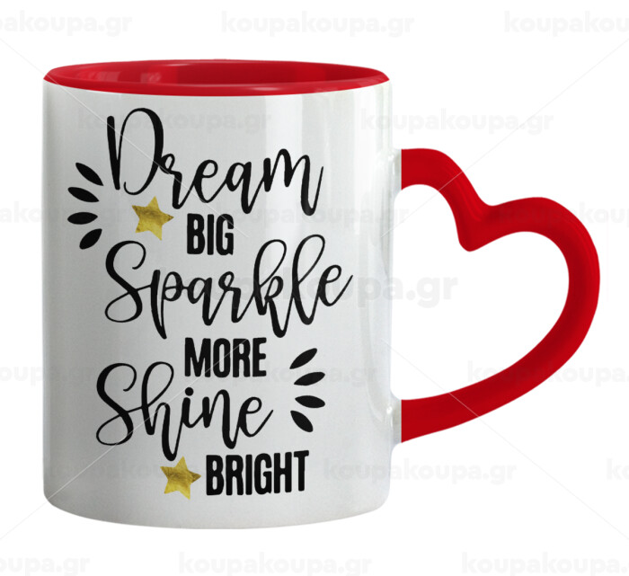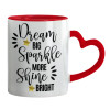 Dream big, Sparkle more, Shine bright, Κούπα καρδιά χερούλι κόκκινη, κεραμική, 330ml