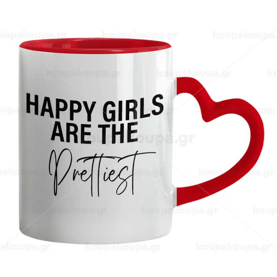 Happy girls are the prettiest, Κούπα καρδιά χερούλι κόκκινη, κεραμική, 330ml