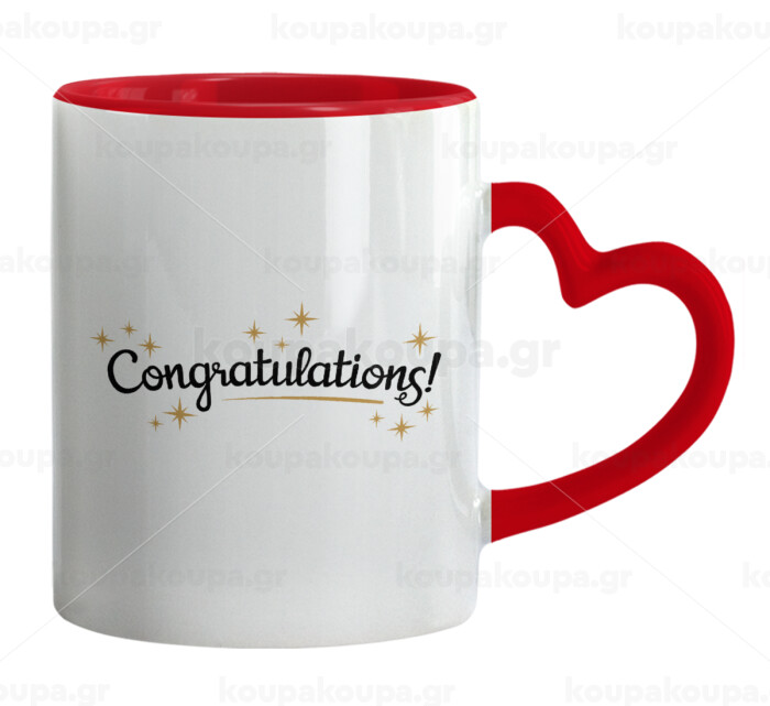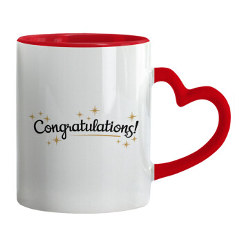 Congratulations, Κούπα καρδιά χερούλι κόκκινη, κεραμική, 330ml
