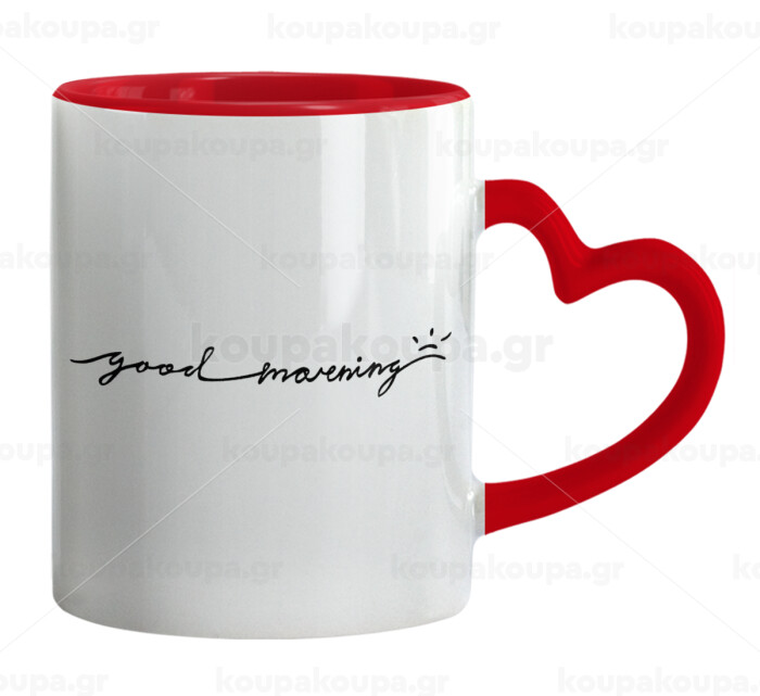 Good morning, Κούπα καρδιά χερούλι κόκκινη, κεραμική, 330ml