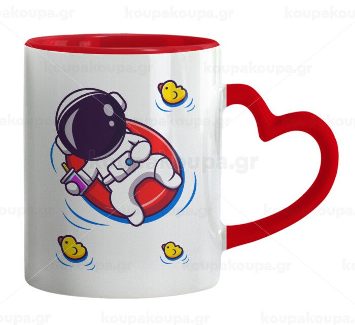 Μικρός αστροναύτης θάλασσα, Κούπα καρδιά χερούλι κόκκινη, κεραμική, 330ml