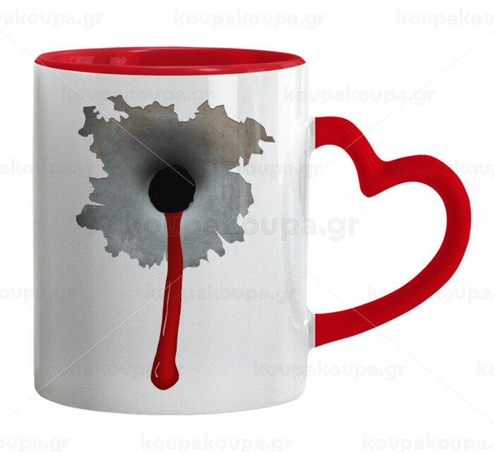 Bullet holes, Κούπα καρδιά χερούλι κόκκινη, κεραμική, 330ml