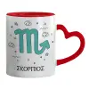 Ζώδια Σκορπιός, Κούπα καρδιά χερούλι κόκκινη, κεραμική, 330ml