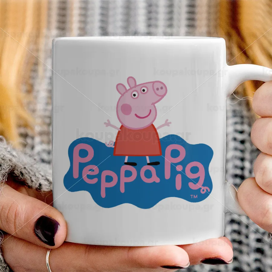 Πέππα το γουρουνάκι μπλε με όνομα, Κούπα, κεραμική, 330ml