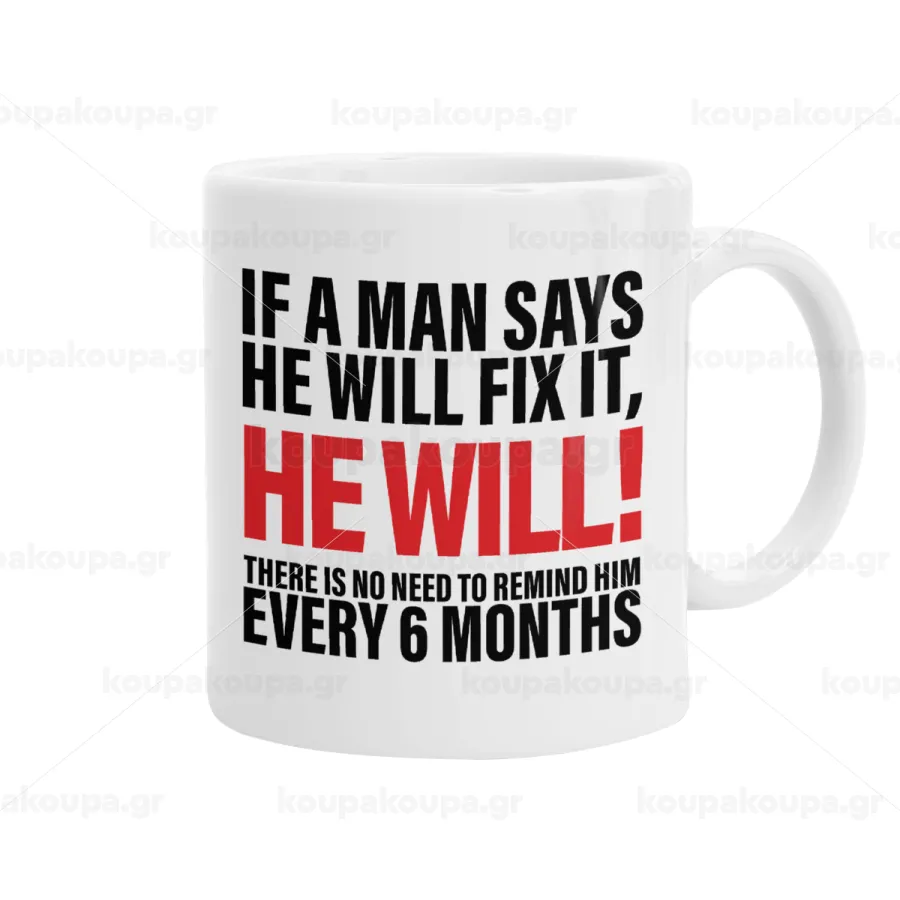 If a man says he will fix it He will There is no need to remind him every 6 months, Κούπα, κεραμική, 330ml