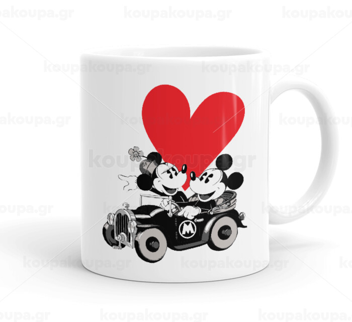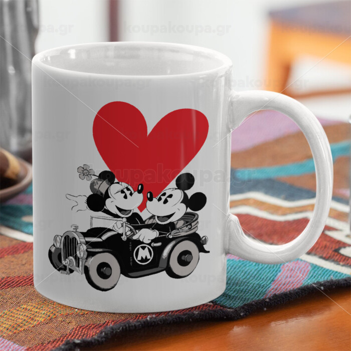 Mickey & Minnie love car, Κούπα, κεραμική, 330ml