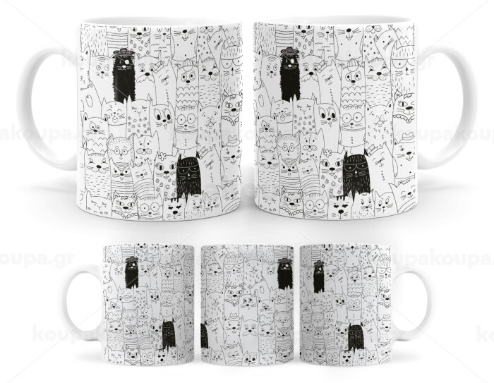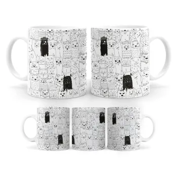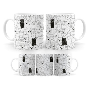 Γάτες γραμμικό σχέδιο, Κούπα, κεραμική, 330ml