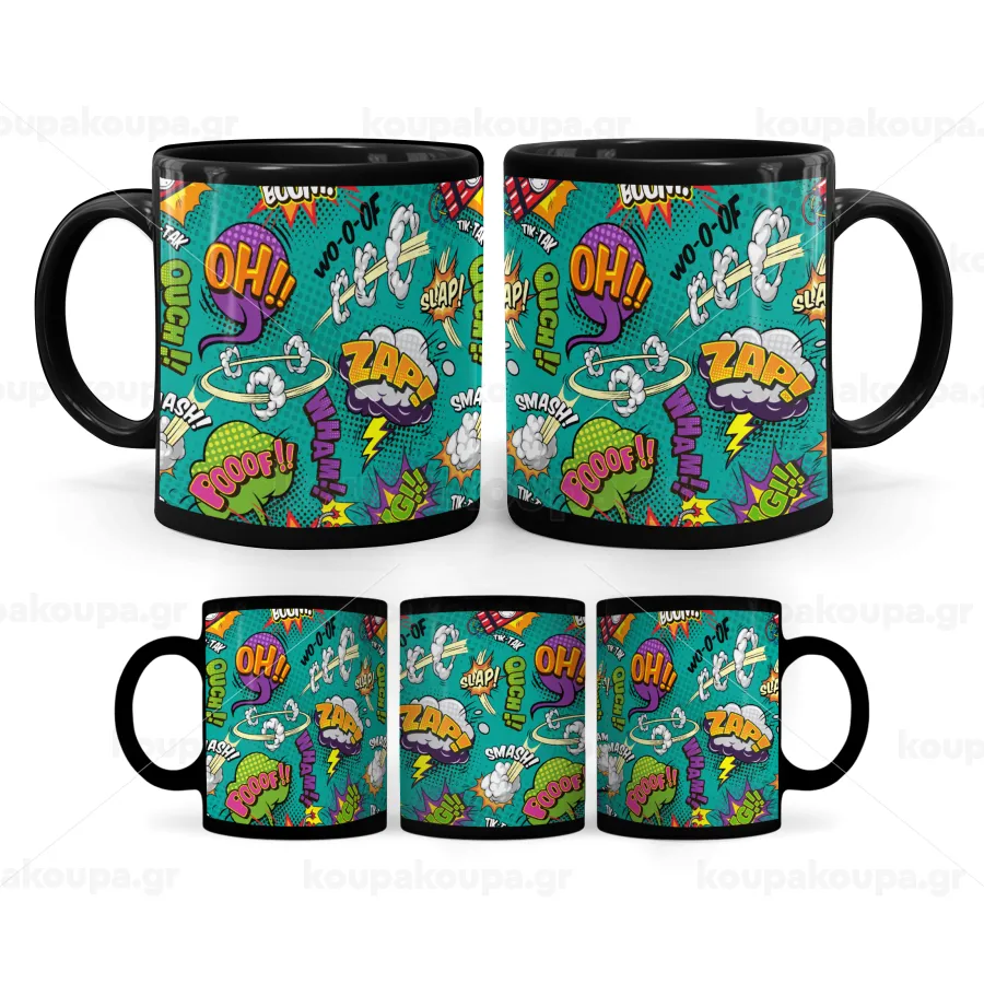 Comic oh, Κούπα Μαύρη, κεραμική, 330ml
