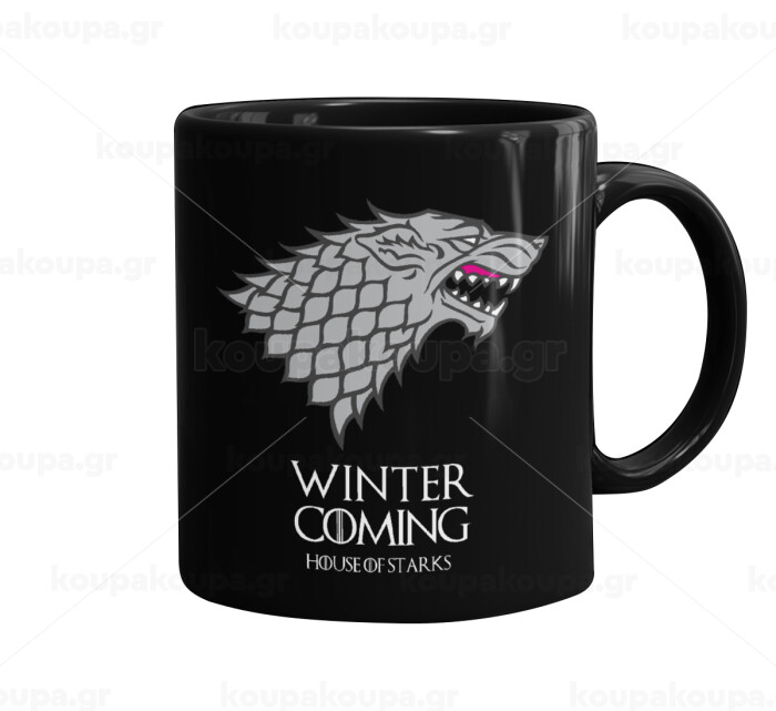 GOT House of Starks, winter coming, Κούπα Μαύρη, κεραμική, 330ml