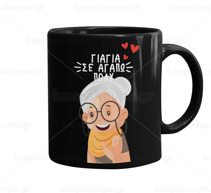 Γιαγιά σε αγαπώ πολύ!, Κούπα Μαύρη, κεραμική, 330ml