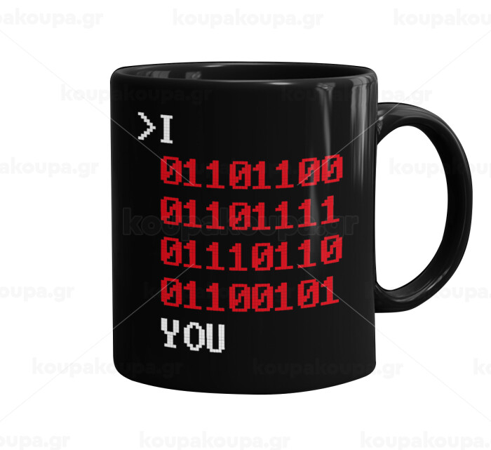 I .... YOU, binary secret MSG, Κούπα Μαύρη, κεραμική, 330ml