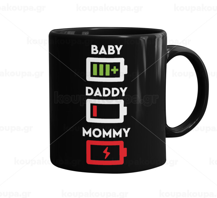 BABY, MOMMY, DADDY Low battery, Κούπα Μαύρη, κεραμική, 330ml