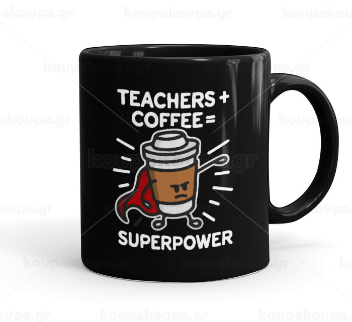 Teacher Coffee Super Power, Κούπα Μαύρη, κεραμική, 330ml