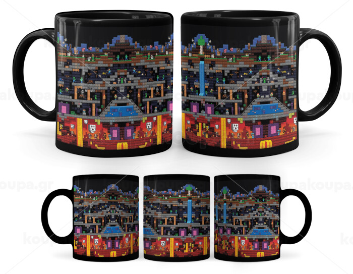 Minecraft 2D map, Κούπα Μαύρη, κεραμική, 330ml