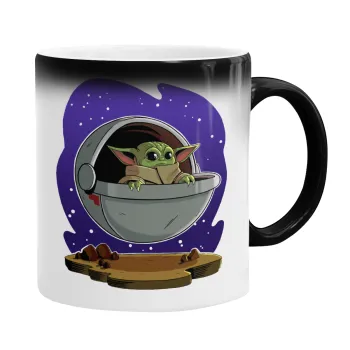 Baby Yoda mandalorian, Κούπα Μαγική, κεραμική, 330ml που αλλάζει χρώμα με το ζεστό ρόφημα