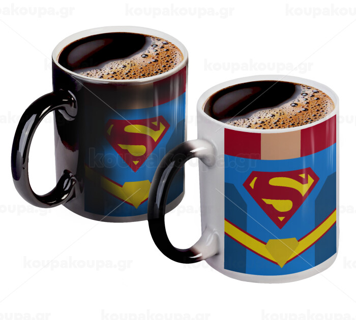 Superman flat, Κούπα Μαγική, κεραμική, 330ml που αλλάζει χρώμα με το ζεστό ρόφημα
