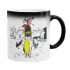 Κούπα μαύρη μαγική γυαλιστερή εξαιρετικής ποιότητας με έντονα χρώματα. Με καφέ, τσάι, νερό ή οποιοδήποτε υγρό από 50 βαθμούς και άνω η κούπα αρχίζει να εμφανίζει το σχέδιο έκπληξη. Μόλις το υγρό πέφτει κάτω από τους 50 βαθμούς και αρχίζει να κρυώνει, ξαναγίνεται μαύρη.