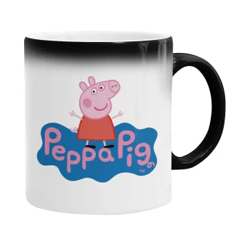 Πέππα το γουρουνάκι μπλε με όνομα, Κούπα Μαγική, κεραμική, 330ml που αλλάζει χρώμα με το ζεστό ρόφημα