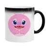 Lilo & Stitch Angel pink, Κούπα Μαγική, κεραμική, 330ml που αλλάζει χρώμα με το ζεστό ρόφημα