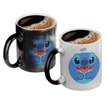Lilo & Stitch blue, Κούπα Μαγική, κεραμική, 330ml που αλλάζει χρώμα με το ζεστό ρόφημα