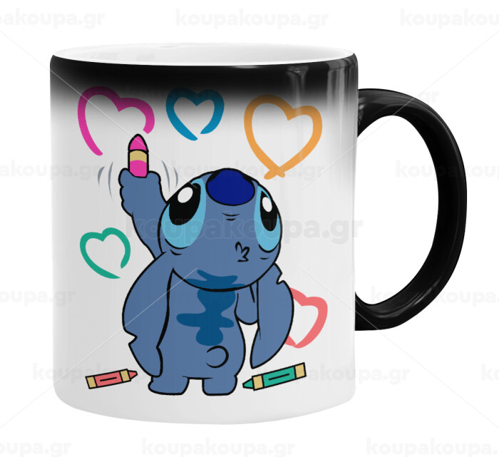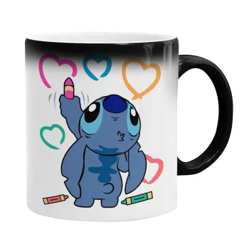 Lilo & Stitch painting, Κούπα Μαγική, κεραμική, 330ml που αλλάζει χρώμα με το ζεστό ρόφημα