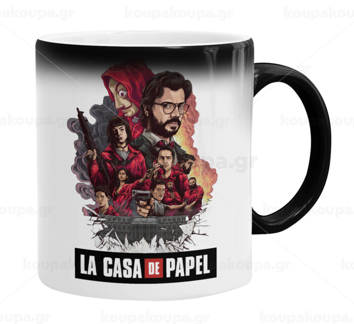 La casa de papel drawing cover, Κούπα Μαγική, κεραμική, 330ml που αλλάζει χρώμα με το ζεστό ρόφημα