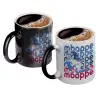 Κούπα μαύρη μαγική γυαλιστερή εξαιρετικής ποιότητας με έντονα χρώματα. Με καφέ, τσάι, νερό ή οποιοδήποτε υγρό από 50 βαθμούς και άνω η κούπα αρχίζει να εμφανίζει το σχέδιο έκπληξη. Μόλις το υγρό πέφτει κάτω από τους 50 βαθμούς και αρχίζει να κρυώνει, ξαναγίνεται μαύρη.