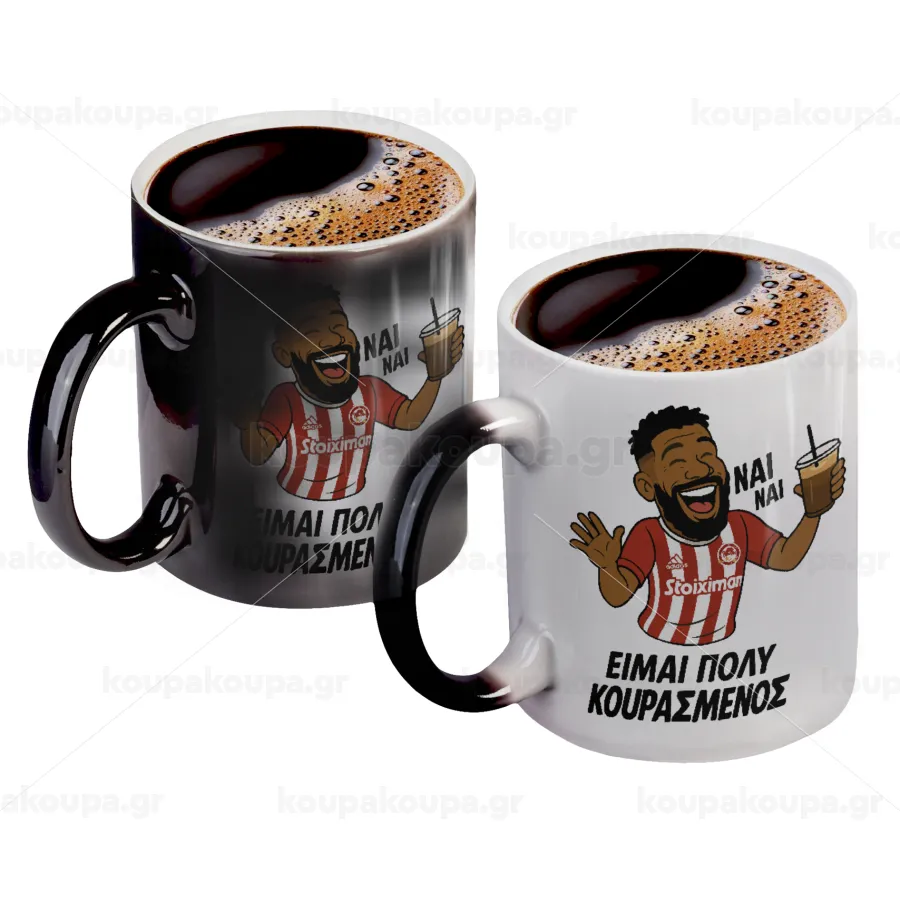 Ροντινέι, "ΠΟΛΥ ΚΟΥΡΑΣΜΕΝΟΣ", Κούπα Μαγική, κεραμική, 330ml που αλλάζει χρώμα με το ζεστό ρόφημα