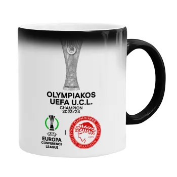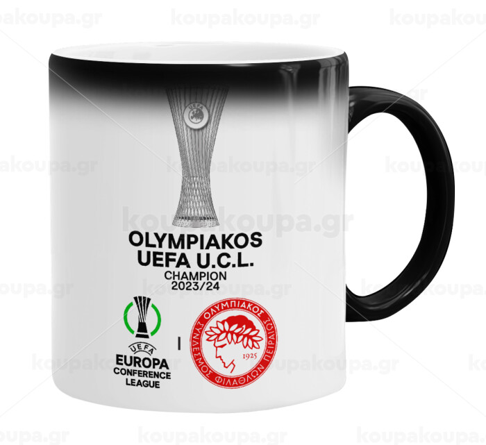 Ολυμπιακός νικητής UEFA Europa Conference League Champion 2023/24, Κούπα Μαγική, κεραμική, 330ml που αλλάζει χρώμα με το ζεστό ρόφημα