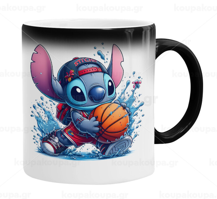 Stitch Basketball, Κούπα Μαγική, κεραμική, 330ml που αλλάζει χρώμα με το ζεστό ρόφημα