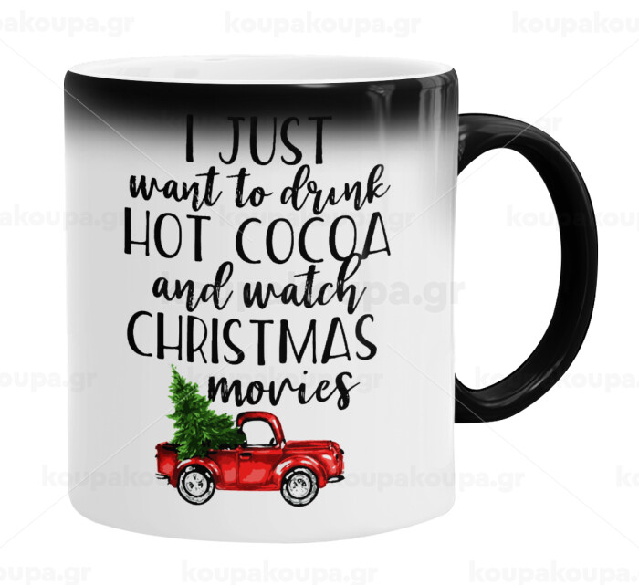 I just want to drink hot cocoa and watch christmas movies pickup car, Κούπα Μαγική, κεραμική, 330ml που αλλάζει χρώμα με το ζεστό ρόφημα
