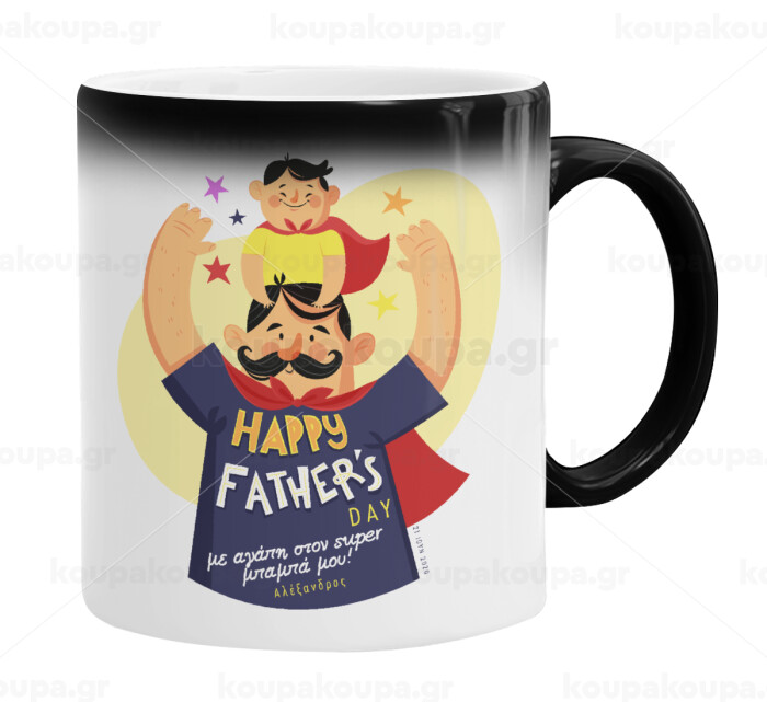 Happy Fathers Day με όνομα, Κούπα Μαγική, κεραμική, 330ml που αλλάζει χρώμα με το ζεστό ρόφημα