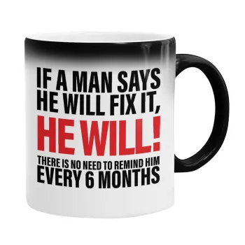 If a man says he will fix it He will There is no need to remind him every 6 months, Κούπα Μαγική, κεραμική, 330ml που αλλάζει χρώμα με το ζεστό ρόφημα