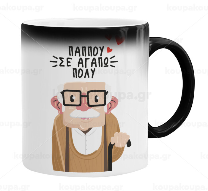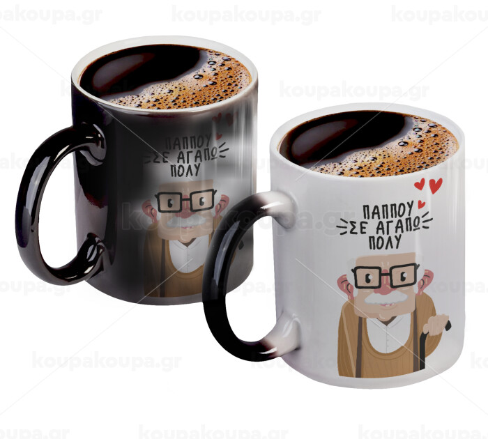 Παππού σε αγαπώ πολύ!, Κούπα Μαγική, κεραμική, 330ml που αλλάζει χρώμα με το ζεστό ρόφημα