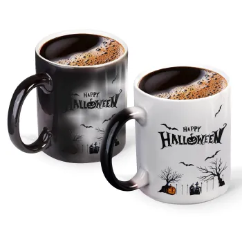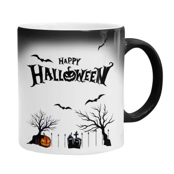Happy Halloween cemetery, Κούπα Μαγική, κεραμική, 330ml που αλλάζει χρώμα με το ζεστό ρόφημα