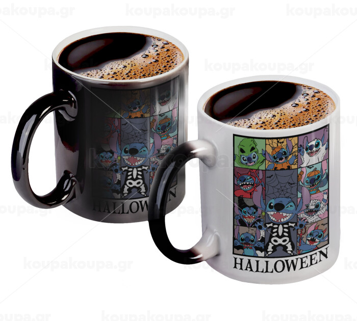 Stitch Halloween, Κούπα Μαγική, κεραμική, 330ml που αλλάζει χρώμα με το ζεστό ρόφημα