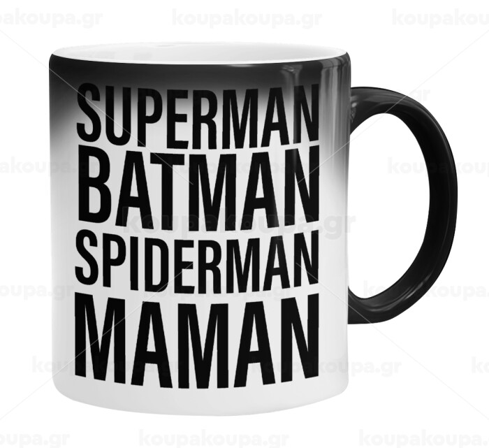 Κούπα μαύρη μαγική γυαλιστερή εξαιρετικής ποιότητας με έντονα χρώματα. Με καφέ, τσάι, νερό ή οποιοδήποτε υγρό από 50 βαθμούς και άνω η κούπα αρχίζει να εμφανίζει το σχέδιο έκπληξη. Μόλις το υγρό πέφτει κάτω από τους 50 βαθμούς και αρχίζει να κρυώνει, ξαναγίνεται μαύρη.