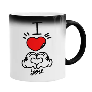 comics hands love, Κούπα Μαγική, κεραμική, 330ml που αλλάζει χρώμα με το ζεστό ρόφημα