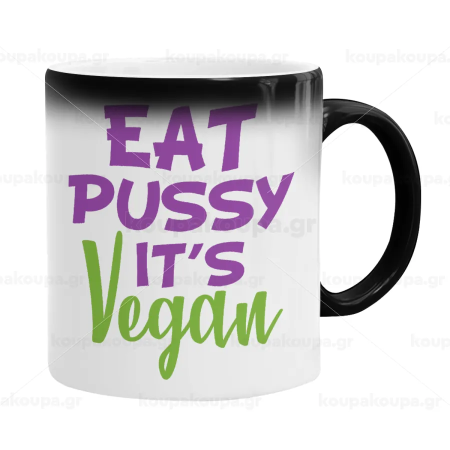 EAT pussy it's vegan, Κούπα Μαγική, κεραμική, 330ml που αλλάζει χρώμα με το ζεστό ρόφημα